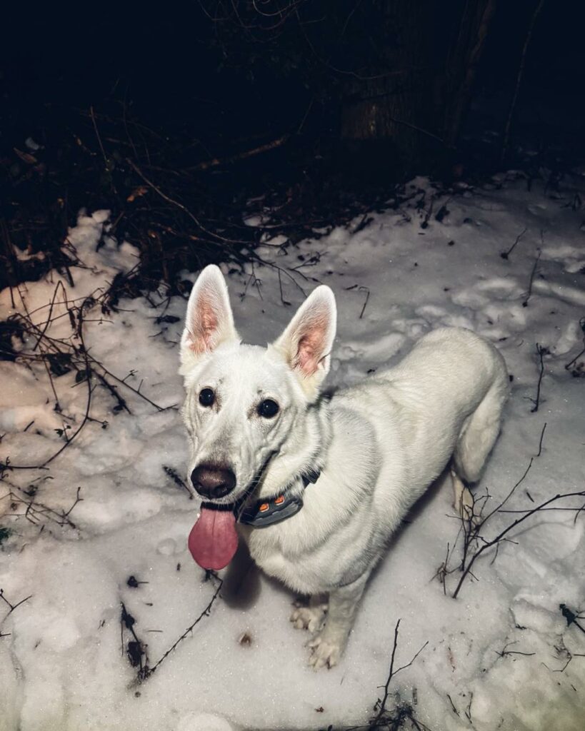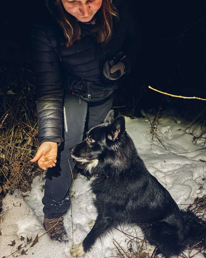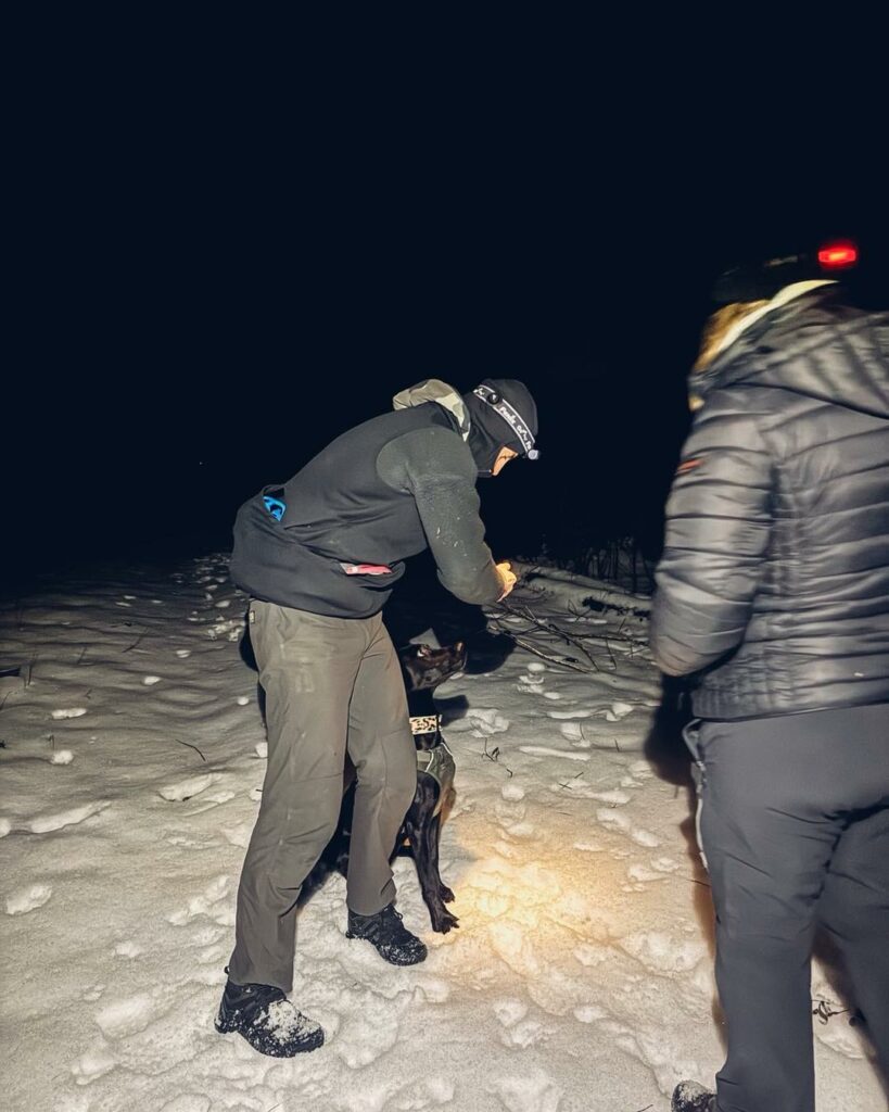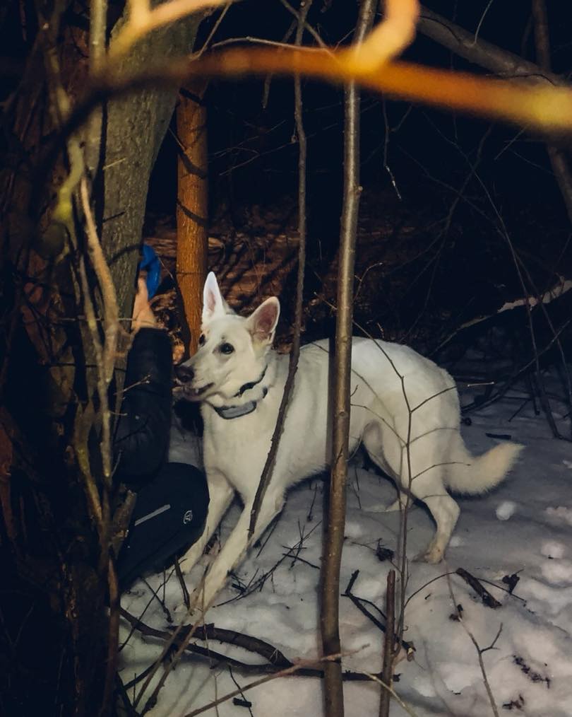 FAZA – najmłodsza stażem, podczas tego treningu skupiła się na lokalizacji pozoranta w terenie leśnym. Pewnie odnalazła osobę i nagrodziła się wspólną zabawą z pozorantem. Była to bardzo dobra, budująca praca.
