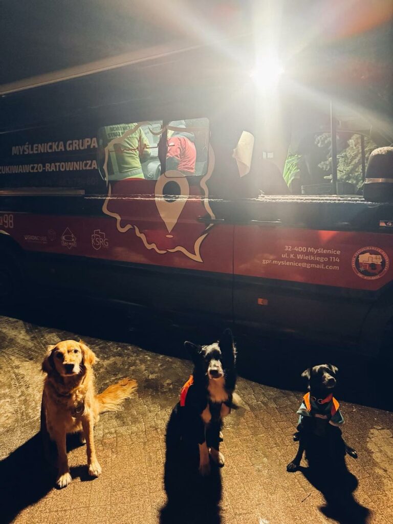 OSP GPR Myślenice – 3 samochody, 29 ratowników, 3 psy poszukiwawcze klasy terenowej, 2 drony oraz quad