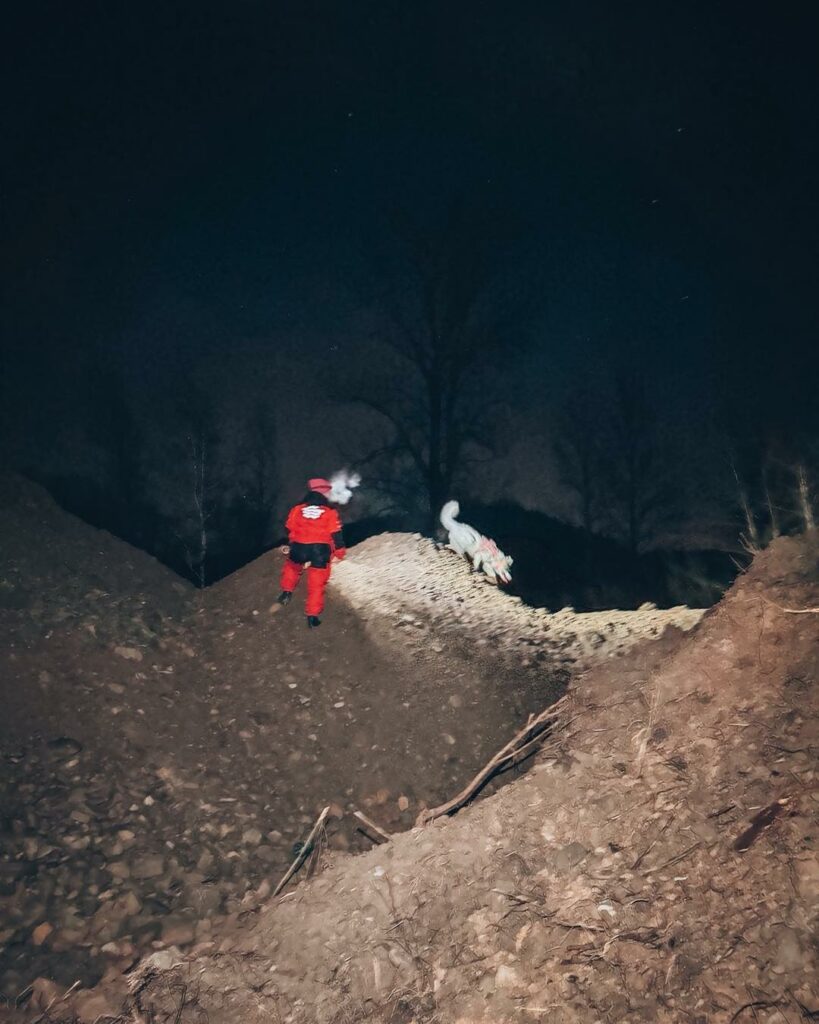 • odłożenie po dotarciu przewodnika do osoby poszkodowanej i rozpoczęciu udzielania pomocy 🚑 – tak jak mogłoby to wyglądać podczas realnej akcji.
